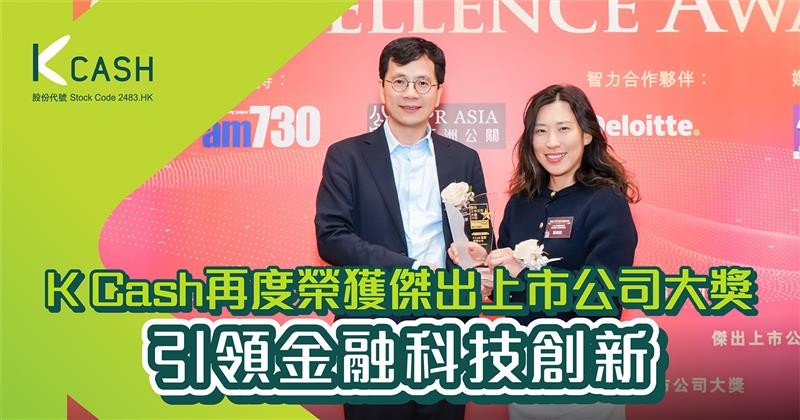 K Cash集團有限公司(「K Cash」;股票編號:2483.HK)欣然宣佈再度榮獲由《am730》及PR ASIA亞洲公關組成大獎籌委會頒發的《傑出上市公司大獎》,連續第二年獲得此項殊榮,充分肯定集團在AI科技創新、企業管理及普惠金融發展方面的卓越表現,重新定義普惠金融服務的標準。